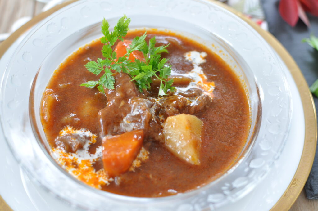 ビーフシチューは、箸で切れるくらい柔らかく仕上げる本格ビーフシチュー。