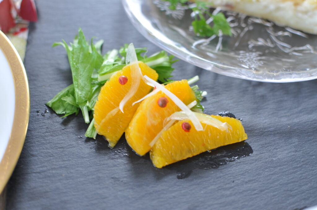 こちらも前菜やワインのおつまみにおすすめの、オレンジと玉ねぎのマリネ。