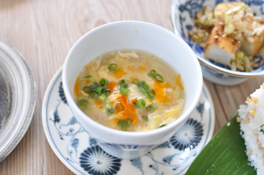 焼き葱と豆腐と卵のピリ辛とろみスープ。